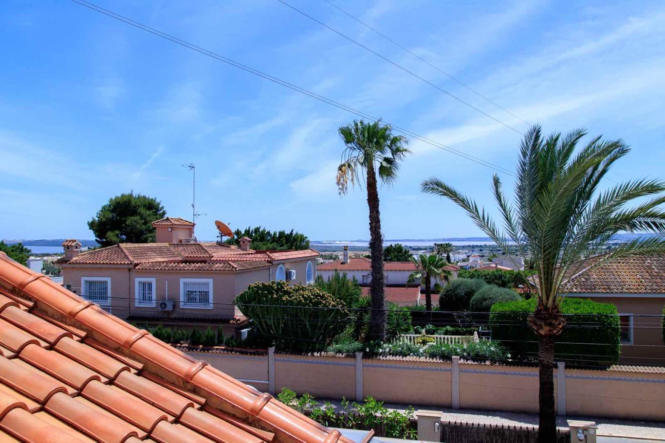 Esta villa ha sido construida siguiendo un proyecto personalizado que combina el estilo mediterráneo con un diseño funcional y moderno. En su planta baja se encuentra un amplio salón dividido en varias áreas, una cocina independiente con acceso al patio y 3 dormitorios con sus respectivos baños. En la planta superior, se encuentra otro dormitorio con terraza, un despacho y una sala de juegos con bar. Desde aquí, se pueden admirar las vistas al mar y al lago salado del Parque Natural de La Mata.